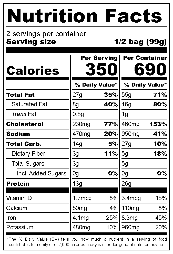 These meals weigh 5-6oz each and feed 1-2 people depending on the meal and activity level