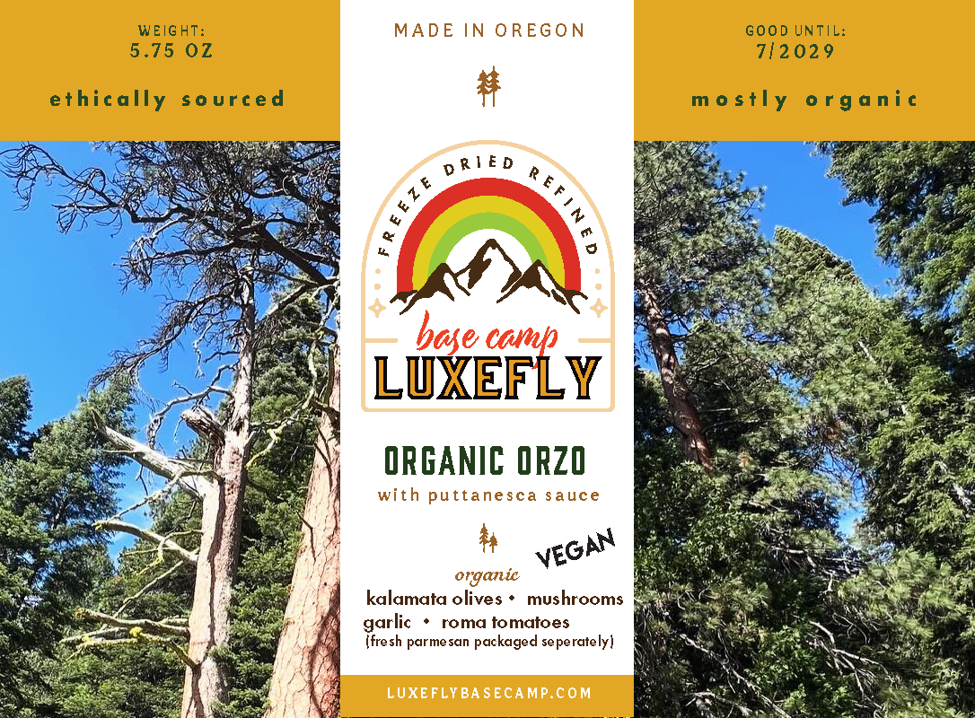 Kalamata olives, organic mushrooms, organic Roma tomatoes, olive oil from Greece, parsley, basil and chili flakes, a generous splash of white wine, served with organic orzo pasta and fresh Parmesan in a side packet.