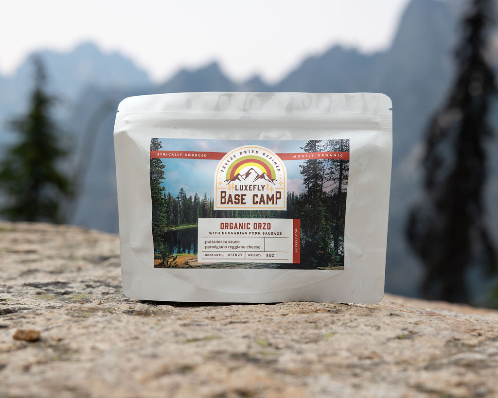 Organic Orzo pasta with a chopped Italian Sauce made from : organic tomatoes, organic mushrooms, organic parsley, organic garlic, kalamata and regular black olives, simmered together with olive oil and a little chile flake, this orzo has slightly spicy garlic Hungarian pork sausage and a side of parmesan cheese.