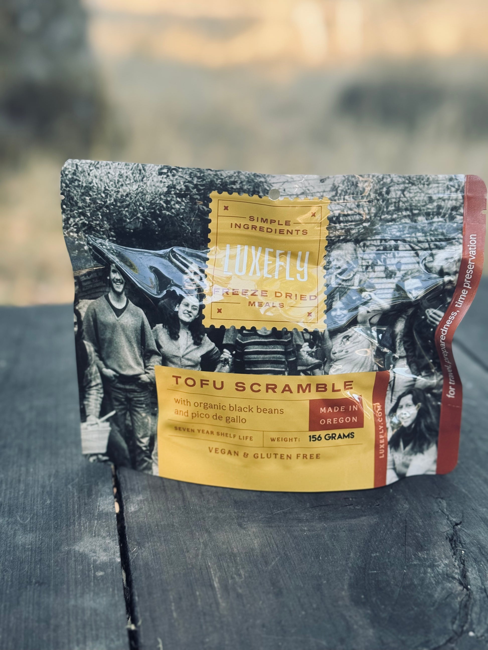 This meal contains a whole block of organic tofu, red bell peppers, sautéed onions, special herbs and a dash of brewers yeast for that 100% 70's vibe. This is wholesome, filling and hearty ! ( must love TOFU:) We add separately organic black beans and organic pico de gallo. Vegan and Gluten Free